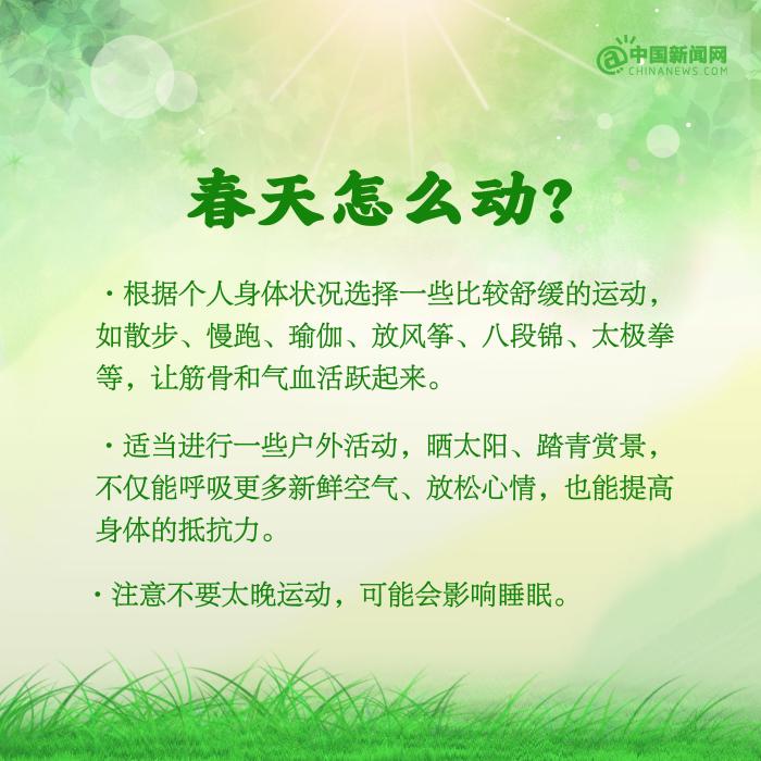 春天是萬(wàn)物復(fù)蘇的季節(jié),也是調(diào)養(yǎng)身體的好時(shí)節(jié)。①每天保證6~8小時(shí)的睡眠,避免熬夜;②適當(dāng)進(jìn)行一些戶外活動(dòng),曬太陽(yáng)、踏青賞景等;③不過(guò)早減衣,穿衣注意下厚上??;④注意清淡飲食,多吃蔬菜,多喝水……春季養(yǎng)生要注意什么?詳戳↓↓