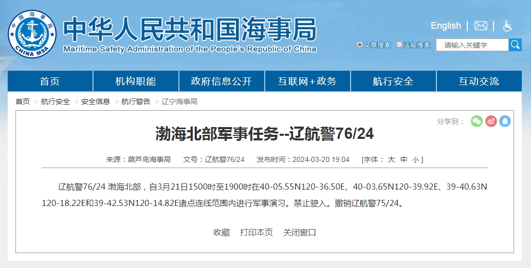 航行警告!渤海北部部分海域?qū)⑦M行軍事演習(xí)