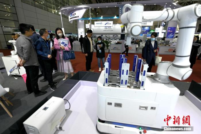 資料圖:3月9日,2023中國(福州)工業(yè)博覽會在福州海峽國際會展中心舉辦,各種機器人自動化設(shè)備吸人眼球。