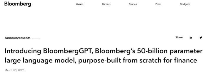 彭博是一家全球商業(yè)、金融信息和新聞資訊提供商。3月30日,該公司發(fā)布了一篇關(guān)于BloombergGPT開發(fā)情況的研究論文,詳細介紹了這一大規(guī)模生成式人工智能(AI)模型。該大語言模型(LLM)專門針對各類金融數(shù)據(jù)進行訓(xùn)練,以全方位支持金融領(lǐng)域的自然語言處理(NLP)任務(wù)。