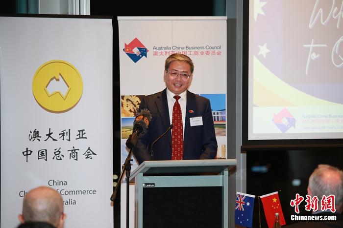 當(dāng)?shù)貢r間3月30日晚,中國駐澳大利亞大使肖千出席昆州澳中工商界歡迎酒會。中新社記者 顧時宏 攝