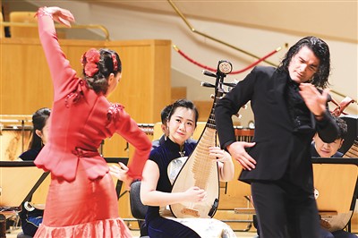 音樂會(huì)在一曲熱烈歡快的《春節(jié)序曲》中拉開序幕。兩國(guó)樂團(tuán)合奏的新創(chuàng)曲目《陽(yáng)光永遠(yuǎn)照耀著我們的友誼》融合了中西音樂特色,令觀眾耳目一新;京劇《貴妃醉酒》向西班牙觀眾展現(xiàn)了中國(guó)傳統(tǒng)戲曲文化的獨(dú)特風(fēng)采;西班牙歌唱家用中文和西文演唱《我愛你中國(guó)》,以歌聲傳遞了兩國(guó)民眾間的友好情誼;中國(guó)樂器笙演奏的《西班牙斗牛曲》“混搭”西班牙“國(guó)粹”弗拉門戈舞蹈,更是令人擊節(jié)叫好。兩國(guó)藝術(shù)家以樂會(huì)友、以藝通心,通過中西音樂元素的碰撞與交融,展現(xiàn)了東西方文化的互融互鑒。
