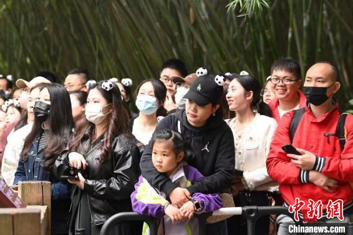 中新網(wǎng)成都4月9日電 (賀劭清 安源 祝歡)4月上旬,成都大熊貓繁育研究基地幼年大熊貓別墅外,抱著竹筍沉浸式“吃播”的大熊貓“和花”吸引了全場(chǎng)游客的目光。人們歡喜地向這位“新晉頂流”揮手問好、拍照留念,似乎全然忘記,為了這三分鐘的見面,剛在料峭春寒中排隊(duì)超過一個(gè)小時(shí)。