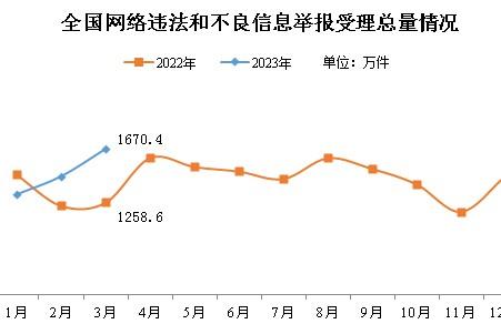 2023年3月全國(guó)受理網(wǎng)絡(luò)違法和不良信息舉報(bào)1670.4萬(wàn)件