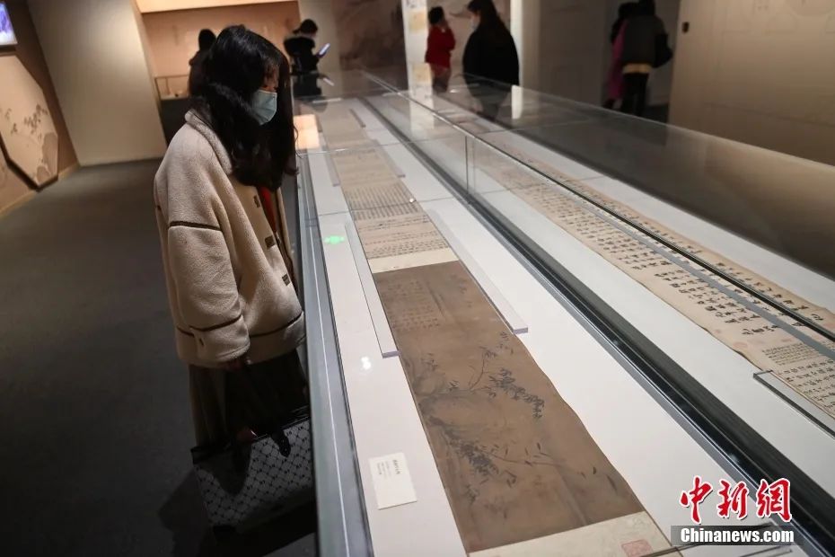 2023年1月16日,四川成都,四川博物院跨年大展“高山仰止回望東坡——蘇軾主題文物特展”迎來(lái)文物上新,《瀟湘竹石圖》《洞庭春色賦·中山松醪賦卷》《陽(yáng)羨帖》手卷三件蘇軾真跡齊聚。圖為中國(guó)美術(shù)館藏蘇軾《瀟湘竹石圖》。中新社記者 安源 攝