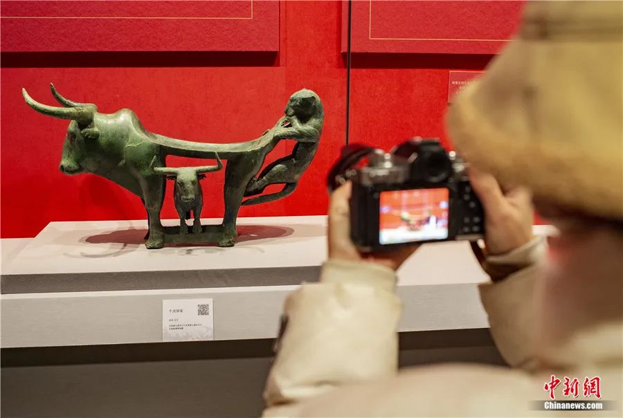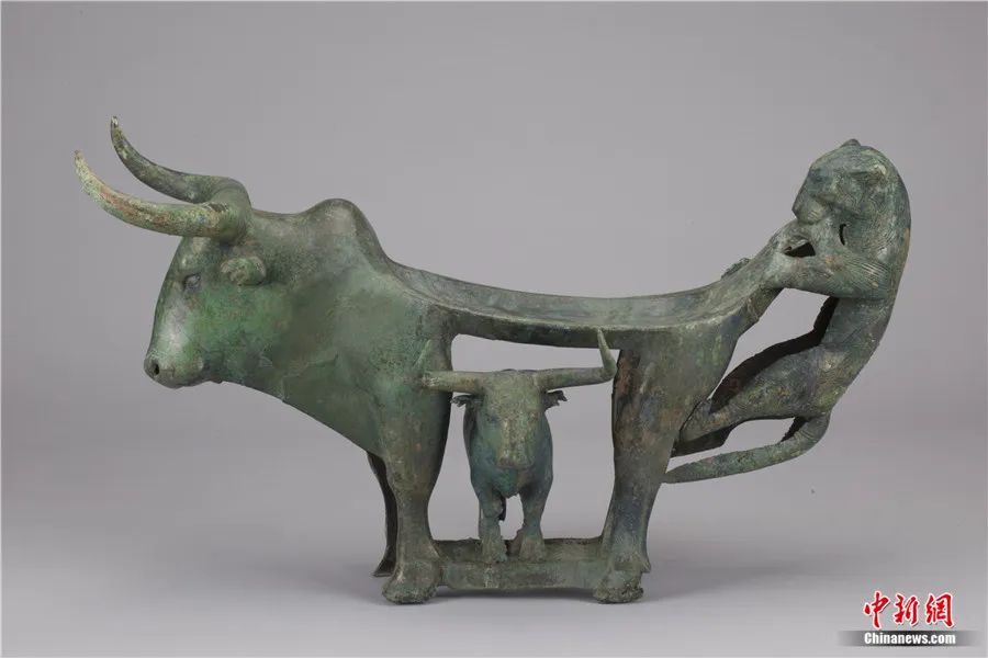 此外,還有專家延伸解讀:在古滇國,虎為百獸之王,象征權(quán)威,牛則是財富和生命的標志。?;~案中的虎、牛形象成為滇人重點表達的主題,顯示了滇人崇虎、崇牛之情,表達了對權(quán)力、財富和生命的向往。