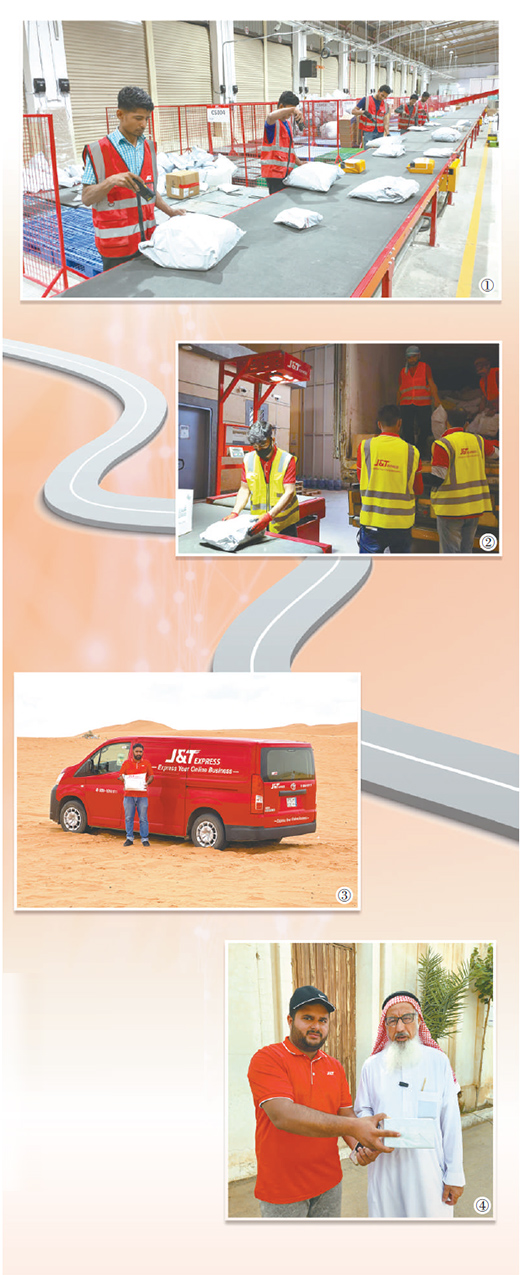 圖①:位于利雅得的轉(zhuǎn)運(yùn)中心內(nèi),工作人員開始分揀包裹。
