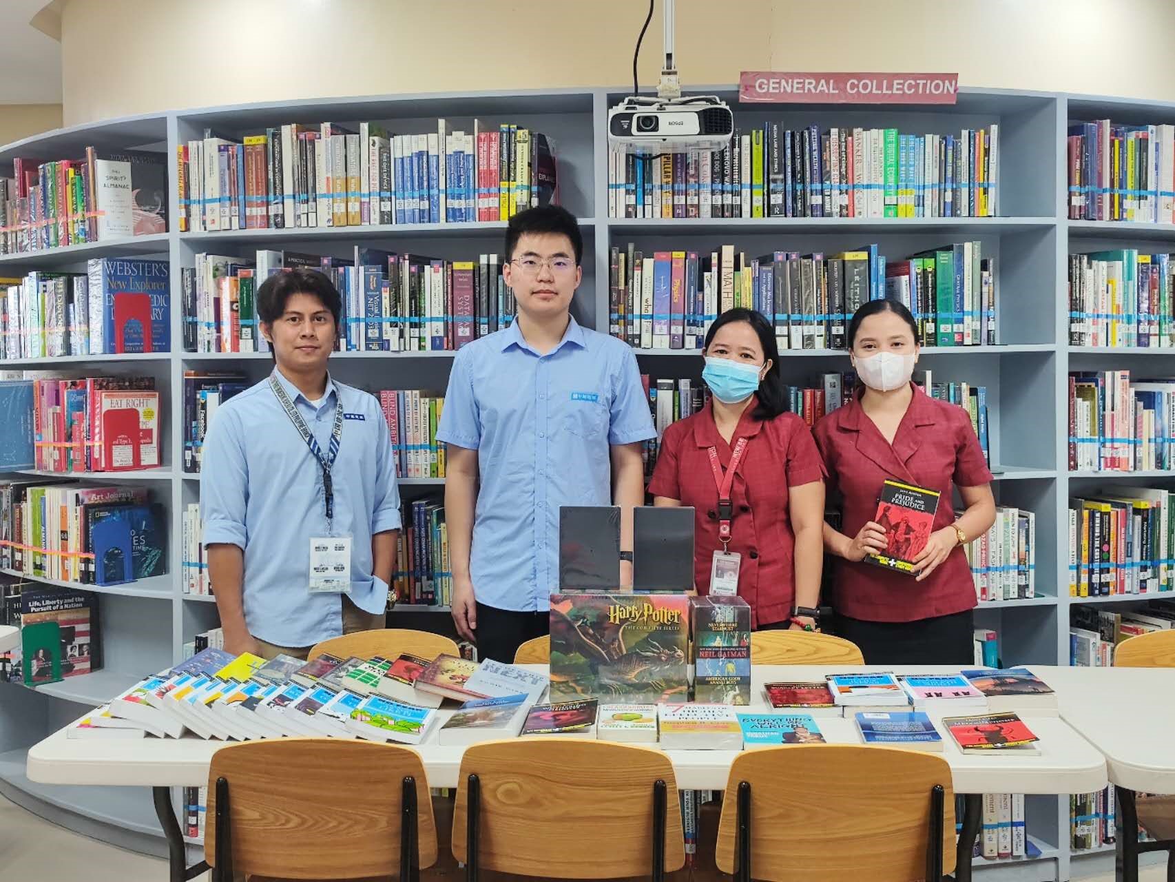 活動(dòng)結(jié)束后,中建三局菲律賓KCC項(xiàng)目向菲律賓新布萊頓學(xué)校捐贈(zèng)50余本中外書籍和電子閱讀器等閱讀設(shè)備。
