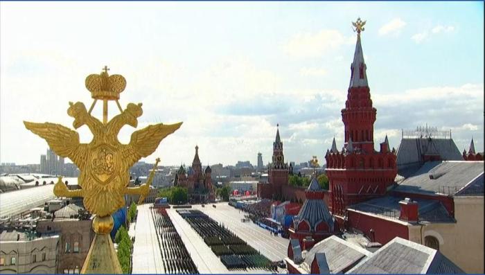 今年紅場閱兵的空中部分取消,最后一列軍事裝備沿著紅場行進(jìn)完畢后,軍樂隊奏響《勝利》樂曲。莫斯科時間11時左右,紅場閱兵式在“烏拉”聲中結(jié)束。