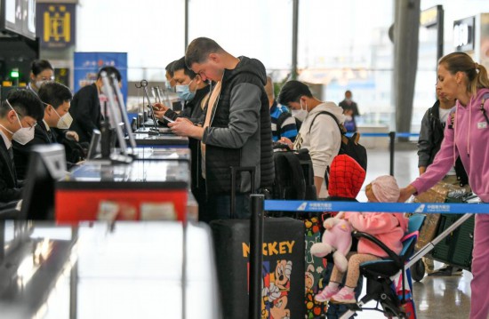 4月25日,南航工作人員在為旅客辦理值機(jī)手續(xù)。4月25日,一架中國(guó)南方航空CZ6015航班從烏魯木齊地窩堡國(guó)際機(jī)場(chǎng)起飛,前往土庫(kù)曼斯坦首都阿什哈巴德。南航新疆分公司介紹,這是目前國(guó)內(nèi)恢復(fù)的首條飛往土庫(kù)曼斯坦的國(guó)際航線。該航線恢復(fù)后,標(biāo)志著我國(guó)新疆與中亞五國(guó)航線全面恢復(fù)。(新華社記者 王菲 攝)