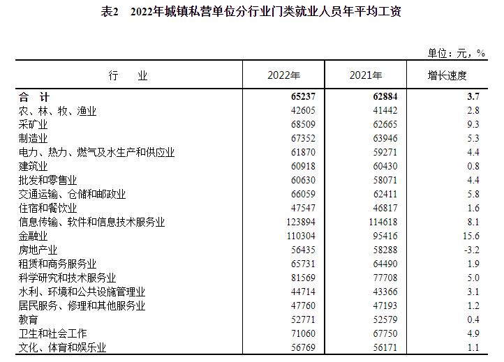 數(shù)據(jù)顯示,城鎮(zhèn)非私營單位中,金融業(yè)年平均工資達到174341元,增長15.6%。城鎮(zhèn)私營單位中,金融業(yè)年平均工資達到110304元,同樣增長15.6%。