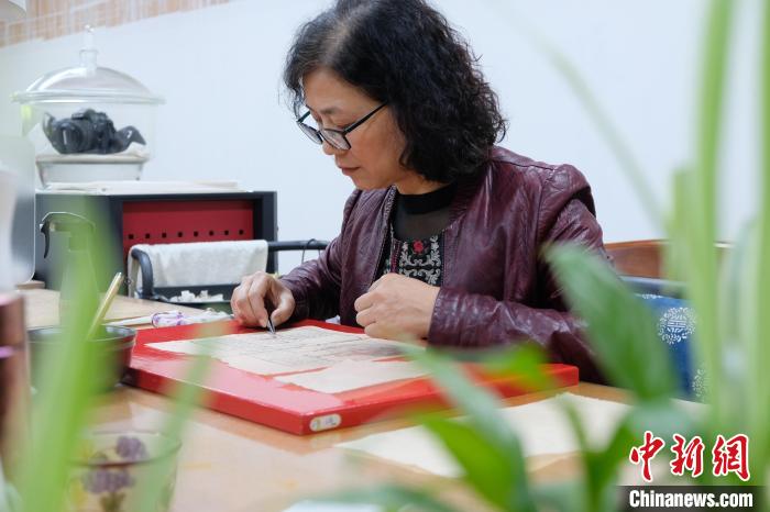 5月9日,王金玉在修補古籍?!≈行律缬浾?林波 攝