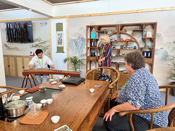 作為南非首個中國茶文化體驗中心,中國傳統(tǒng)茶藝在這一極具特色的非洲旅游文化盛宴上精彩亮相,形成別具一格的文化碰撞。在這古香古色的茶室里,茶香彌漫,琴聲悠揚(yáng)。美輪美奐的茶具、行云流水的茶藝和典雅的古箏演奏共同構(gòu)成了一幅傳統(tǒng)文化之畫卷。參觀者們在近距離體驗茶藝的同時,還親身感受到了中國茶文化的獨特魅力與韻味。