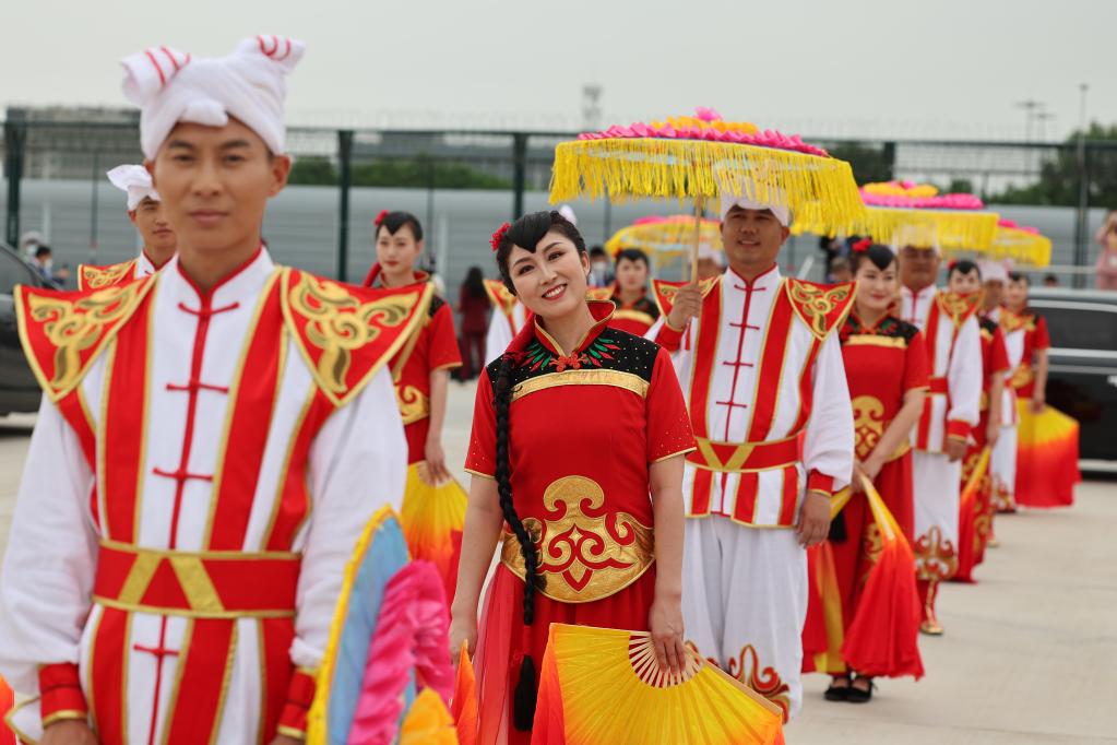 記者在西安咸陽國際機(jī)場看到,17日中午,由190人組成的表演團(tuán)隊(duì)已經(jīng)準(zhǔn)備就緒。當(dāng)?shù)孛癖妼⒁詿崆榈难?、歡快的秧歌等民間藝術(shù)表演,歡迎來自中亞國家的貴賓。