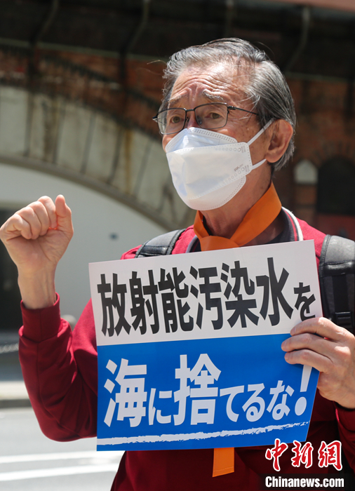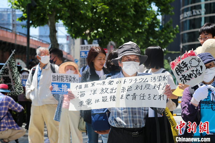 5月16日,日本民眾在東京電力公司總部前舉行集會,表達對日本政府和東京電力公司持續(xù)強推福島核污染水排海計劃的強烈反對。 中新社發(fā) 蔣文月 攝