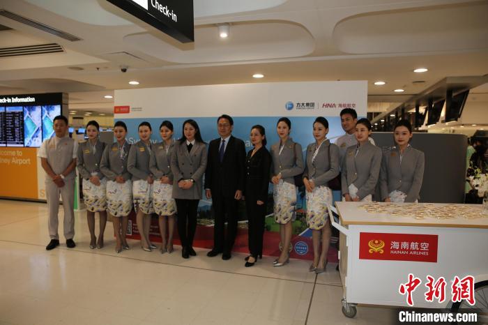 當(dāng)?shù)貢r間5月20日,海南航空悉尼與中國太原之間的定期航班運(yùn)營重啟儀式在澳大利亞悉尼國際機(jī)場舉行。中新社記者 顧時宏 攝