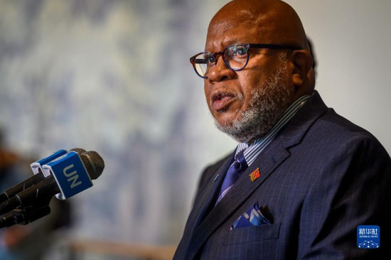 6月1日,在位于紐約的聯(lián)合國(guó)總部,特立尼達(dá)和多巴哥常駐聯(lián)合國(guó)代表丹尼斯·弗朗西斯當(dāng)選第78屆聯(lián)合國(guó)大會(huì)主席后向記者發(fā)表談話(huà)。新華社發(fā)(聯(lián)合國(guó)供圖/洛伊·費(fèi)利普攝)