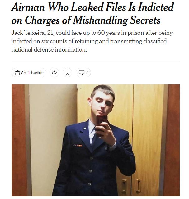 中新網(wǎng)6月16日電 綜合外媒報(bào)道,當(dāng)?shù)貢r(shí)間15日,美國(guó)聯(lián)邦大陪審團(tuán)起訴21歲的空軍國(guó)民警衛(wèi)隊(duì)成員杰克·特謝拉(Jack Teixeira),罪名是保留和傳播國(guó)防機(jī)密信息等。