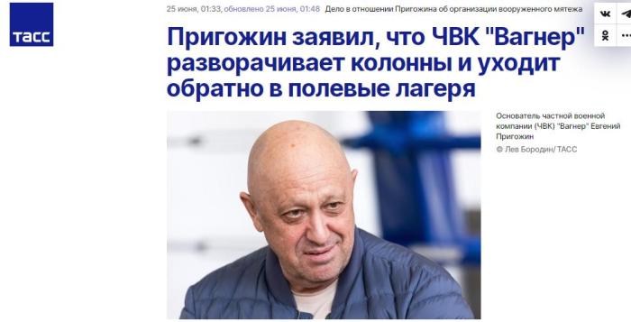 另據(jù)俄新社稍早前報道,24日,白俄羅斯總統(tǒng)盧卡申科與普里戈任進行了交流,普里戈任接受了盧卡申科關于停止“瓦格納”在俄行動,以及采取措施緩和緊張局勢的建議。