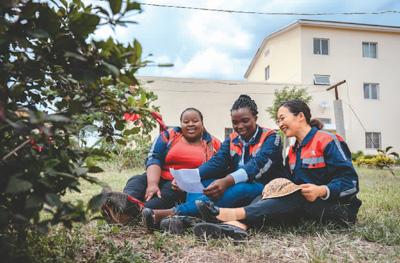 中國(guó)師父陳玲(右)是非洲之星鐵路運(yùn)營(yíng)公司工電部電子設(shè)備檢修工區(qū)工長(zhǎng)。在肯尼亞工作4年來(lái),她見(jiàn)證了女學(xué)員們電務(wù)技術(shù)的成長(zhǎng)?!艾F(xiàn)在她們都能獨(dú)當(dāng)一面。”陳玲說(shuō)。朱迪思(左)是陳玲的學(xué)員之一,她從師父那里獲得的不僅是技術(shù),工作間隙對(duì)飲食、文化等多維度的交流同樣讓她受益匪淺?!拔覀冎g是師徒,更是姐妹?!敝斓纤颊f(shuō)。圖為陳玲在休息時(shí)教學(xué)員唱中文歌曲。
