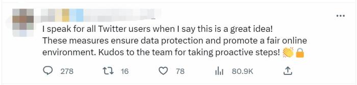 但也有網(wǎng)友對(duì)此表示歡迎,表示“我代表所有的推特用戶聲明,這是一個(gè)好主意!這些措施能確保數(shù)據(jù)得到保護(hù),同時(shí)促進(jìn)公平的網(wǎng)絡(luò)環(huán)境。感謝團(tuán)隊(duì)采取積極措施?!?/p>