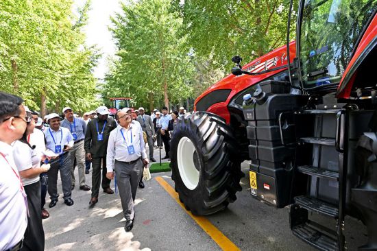 看著現(xiàn)場陳列的一排排大型農機裝備,駐華使節(jié)們興致勃勃,紛紛拍照留念,并不時就技術細節(jié)、性能參數、應用場景等問題與在場工程技術人員交流。