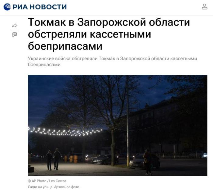 中新網7月12日電 據俄新社當地時間11日報道,扎波羅熱地區(qū)的托克馬克市作戰(zhàn)部門稱,烏克蘭軍隊使用集束彈藥對該地進行了打擊。