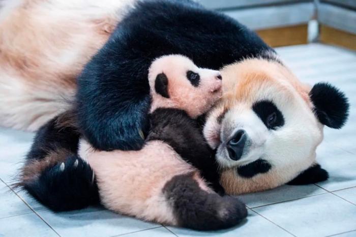 這是旅韓大熊貓“愛寶(華妮)”“樂寶(園欣)”繼2020年誕下“福寶”后在韓國第二次產仔。
