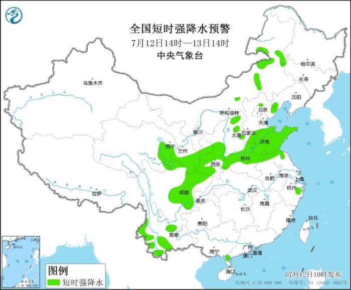 中新網(wǎng)7月12日電 據(jù)中央氣象臺網(wǎng)站消息,中央氣象臺7月12日10時繼續(xù)發(fā)布強對流天氣藍色預警:預計7月12日14時至13日14時,內(nèi)蒙古中東部、陜西中部、山東大部、河南東部、安徽北部、江蘇北部、四川盆地中西部等地的部分地區(qū)將有8-10級雷暴大風或冰雹天氣;內(nèi)蒙古中東部、青海東部、甘肅東部和南部、陜西中南部、山西中北部、河北南部、山東、河南中北部、安徽北部、江蘇北部、四川盆地西部、云南西南部等地的部分地區(qū)將有短時強降水天氣,小時雨量30-50毫米,局地可達60毫米以上。