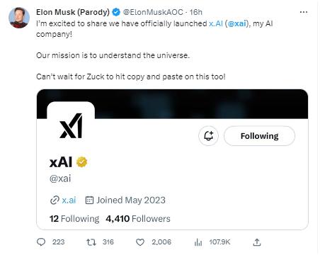 當天,馬斯克在社交媒體平臺推特上發(fā)文,宣布成立“xAI”,并稱“我們的任務是了解宇宙”。據報道,政府文件顯示,馬斯克于3月在內華達州注冊了該公司。