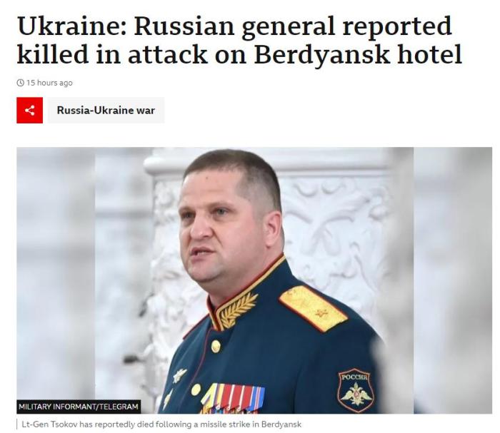 英國(guó)廣播公司(BBC)報(bào)道俄羅斯南部軍區(qū)副司令措科夫遇襲身亡。圖片來(lái)源:BBC報(bào)道截圖