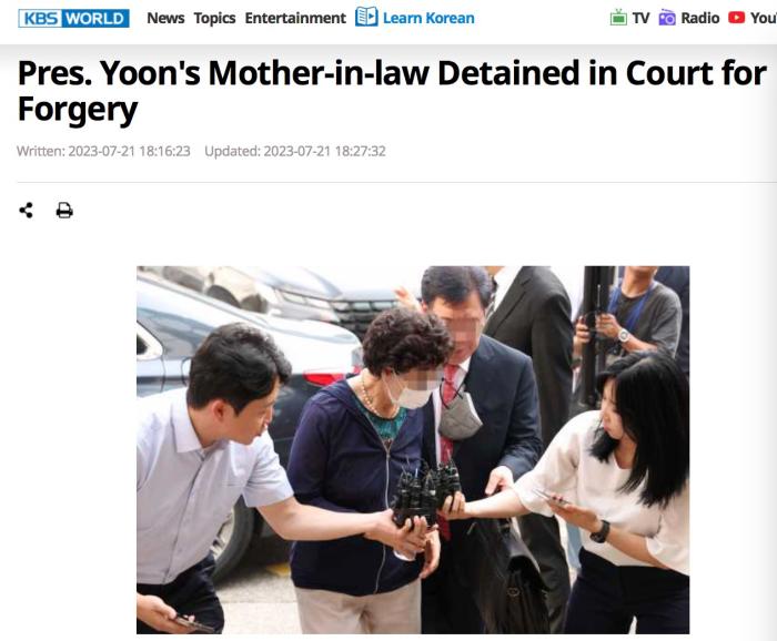 韓聯(lián)社指出,現(xiàn)任總統(tǒng)的岳母當(dāng)庭被捕,在韓國(guó)憲政史上尚屬首次。