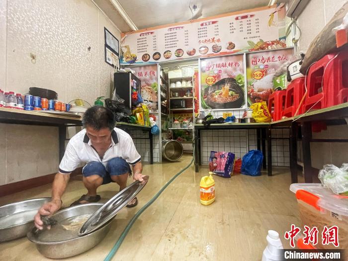 “店內的淤泥很多,都有十幾厘米高,早上7點左右一直整理到現(xiàn)在(18時),全部整理完還要再進行全面消毒。”馮先生說。