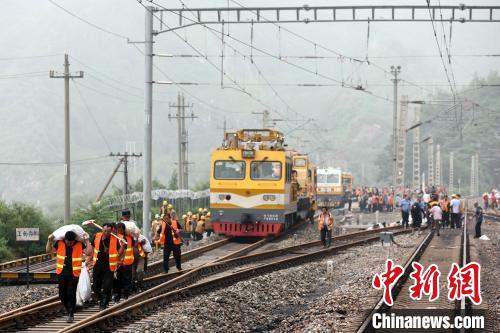 8月1日,北京門(mén)頭溝區(qū),豐沙鐵路妙峰山鎮(zhèn)水峪嘴村段,工作人員前往鐵路線清淤搶修。7月29日以來(lái),北京地區(qū)持續(xù)強(qiáng)降雨,西南部降雨量大。受降雨影響,北京豐臺(tái)至沙城鐵路(豐沙線)嚴(yán)重水害?!≈行律缬浾?盛佳鵬 攝