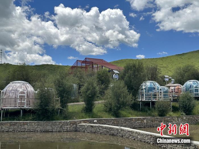 在園區(qū)內(nèi),除了大面積的草場,還能看見一些臨水而建、顏色各異的圓形房間。王春貴介紹稱,那是供游客休閑的星空房。目前,紅原牦牛現(xiàn)代農(nóng)業(yè)園區(qū)正朝著牧旅融合的道路發(fā)展,咖啡屋、星空房等休閑設(shè)施以及牧旅融合體驗區(qū)已初步建設(shè)完成?!叭拷ǔ梢院?,游客還能在園區(qū)內(nèi)體驗牦牛喂養(yǎng)?!蓖醮嘿F說。