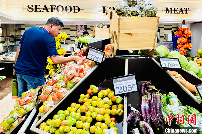 當(dāng)?shù)貢r(shí)間8月4日,菲律賓大馬尼拉地區(qū)馬卡蒂市,市民在超市選購水果。 中新社記者 張興龍 攝