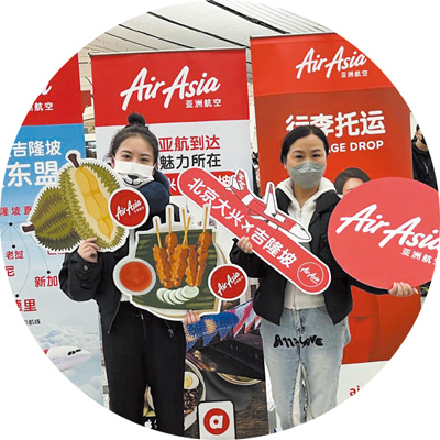 在馬來西亞吉隆坡國(guó)際機(jī)場(chǎng),工作人員歡迎中國(guó)游客。