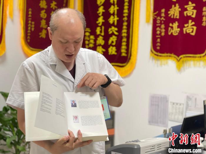 7月10日,閔楷家展示其曾參與編寫的英文版書籍?!⌒焐荷?攝