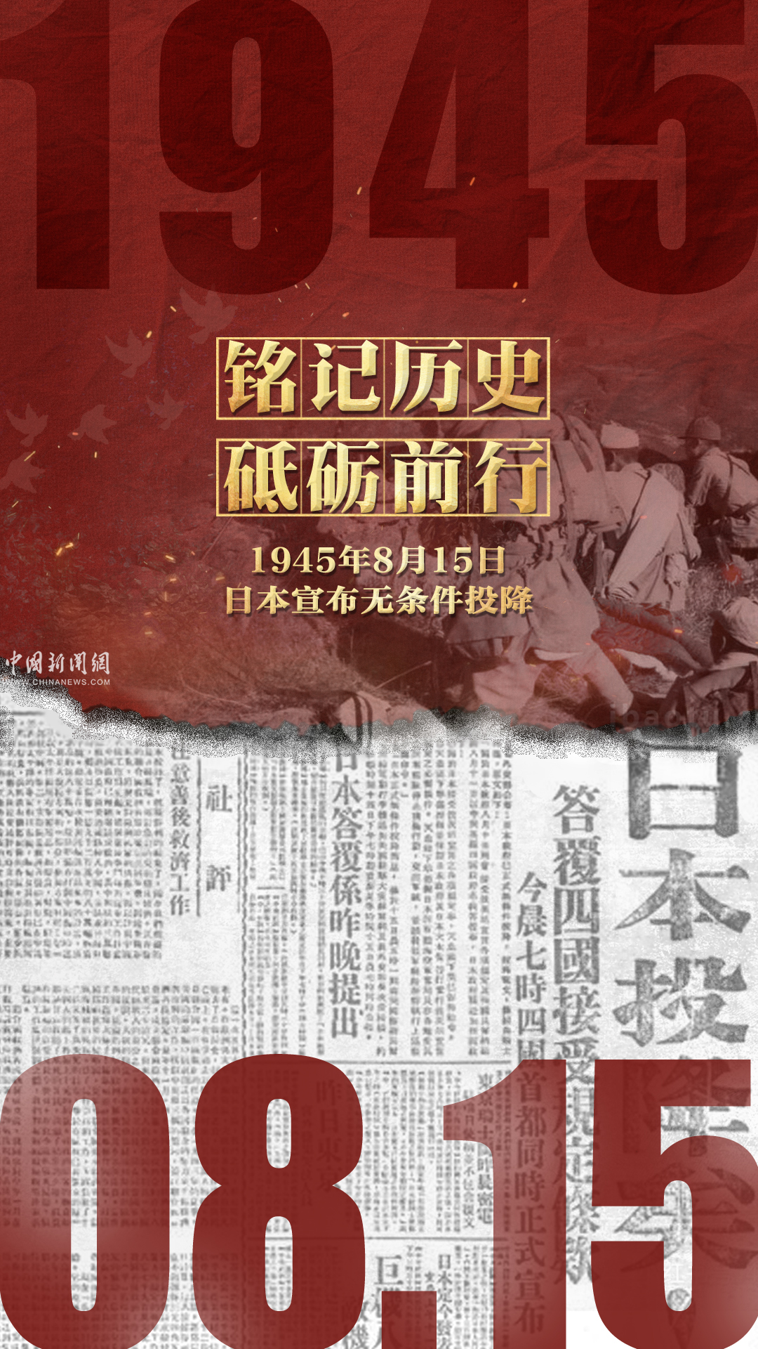 1945年8月15日,日本裕仁天皇通過廣播發(fā)表《終戰(zhàn)詔書》,宣布無條件投降。這是華夏兒女14年浴血奮戰(zhàn)的成功!這是無數鮮血和生命換來的和平!硝煙雖然歸于浮沉,但歷史不能被遺忘! 銘記歷史,緬懷先烈,砥礪前行,吾輩自強!