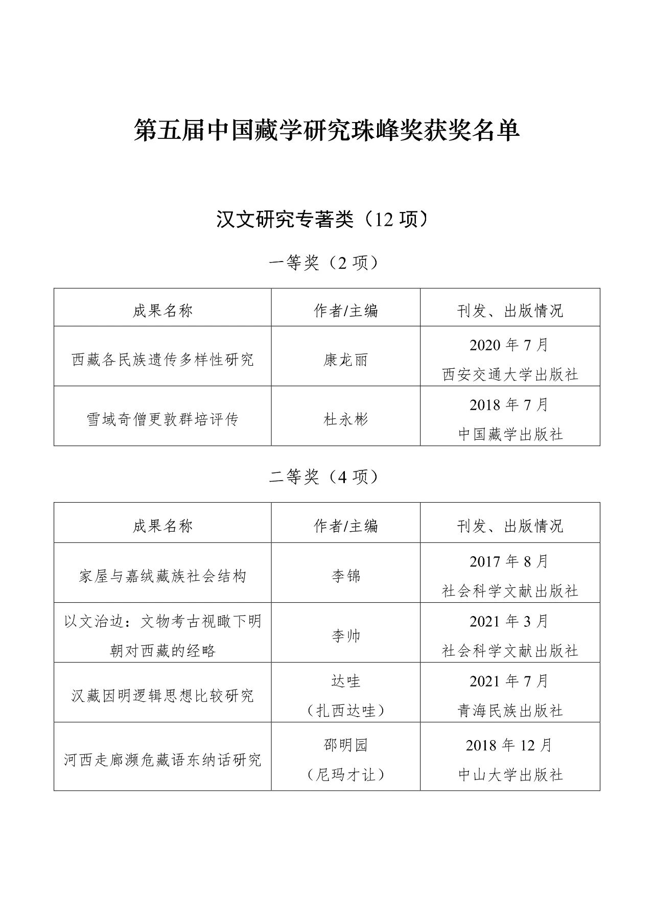 - 【關(guān)注】第五屆中國(guó)藏學(xué)研究珠峰獎(jiǎng)獲獎(jiǎng)名單