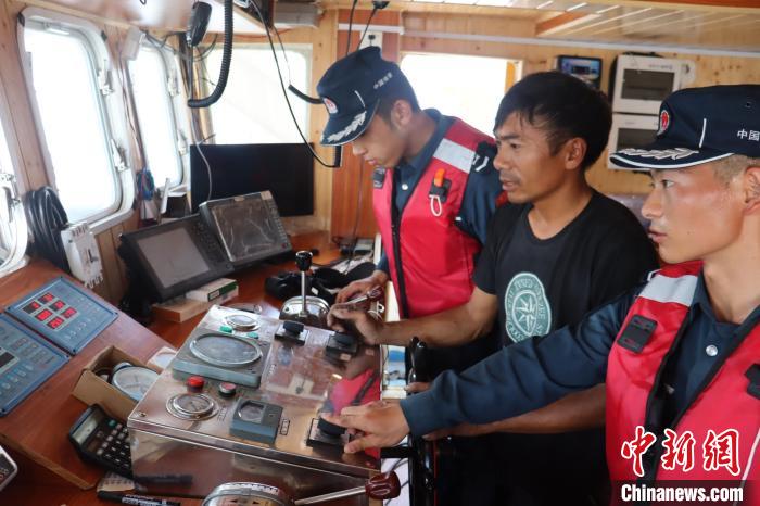 海警執(zhí)法員對漁船導(dǎo)航儀器設(shè)備進行檢查。蔡曉曄 攝