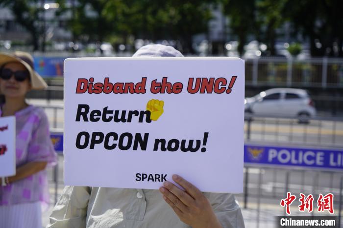 21日上午,韓國(guó)民間團(tuán)體“和平統(tǒng)一開創(chuàng)者”在韓國(guó)總統(tǒng)府前的空地集會(huì)。有市民手舉“中斷韓美軍事演習(xí)”“立即收回戰(zhàn)時(shí)作戰(zhàn)指揮權(quán)”“反對(duì)北約成員國(guó)軍事介入朝鮮半島”等標(biāo)語(yǔ),呼吁韓美兩國(guó)停止軍演,要求廢除美國(guó)對(duì)韓國(guó)提供的“延伸威懾”。