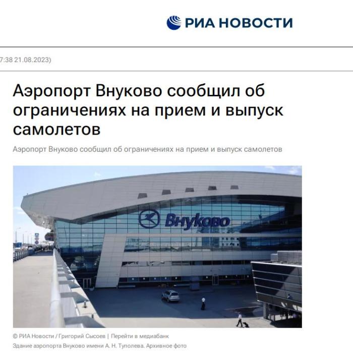 中新網(wǎng)8月21日電 據(jù)俄新社報道,當(dāng)?shù)貢r間21日,俄羅斯首都莫斯科的伏努科沃機場表示,出于機場無法控制的原因,暫時限制航班在該機場起降。