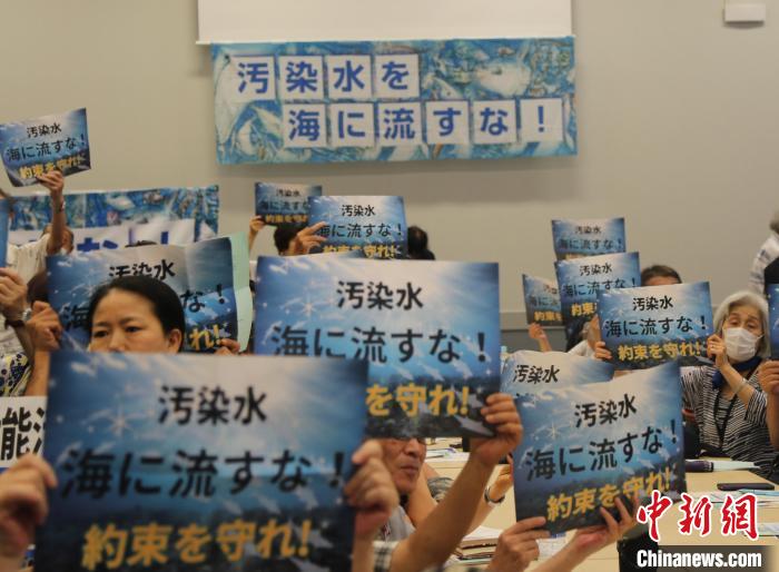 8月18日,日本民眾在日本參議院議員會(huì)館舉行集會(huì),要求政府遵守當(dāng)初作出的不擅自處置核污染水的承諾,撤回核污染水排海計(jì)劃。中新社記者 朱晨曦 攝