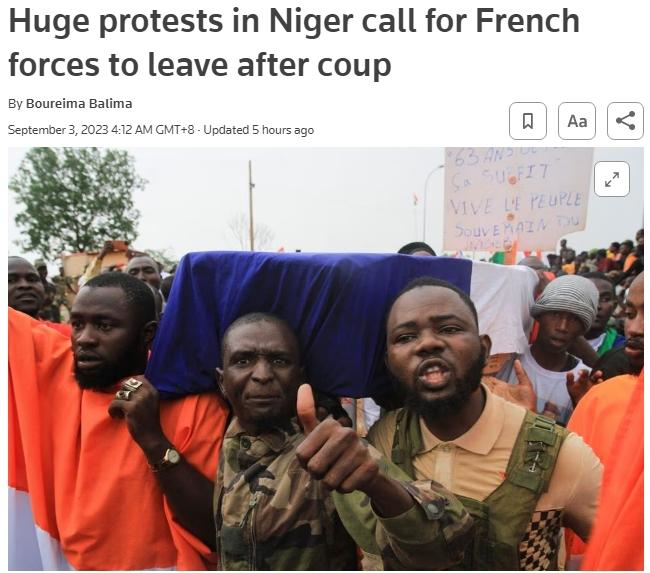 近來,尼日爾國內(nèi)的反法情緒日漸高漲。尼日爾軍政府8月31日宣布,暫停各國非政府組織、國際組織和聯(lián)合國機(jī)構(gòu)在“軍事行動(dòng)區(qū)”內(nèi)活動(dòng),并下令警察驅(qū)逐法國駐尼大使。