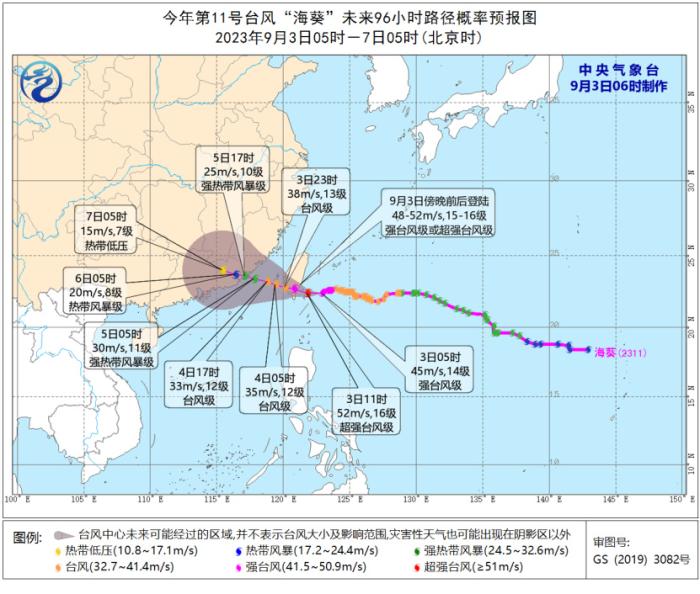 今年第11號臺風(fēng)“??蔽磥?6小時(shí)路徑概率預(yù)報(bào)圖