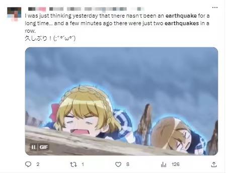 有網(wǎng)友在社交媒體上表示,“昨天還在想(日本)很久沒(méi)發(fā)生地震了,幾分鐘前卻連續(xù)發(fā)生了兩次地震。”