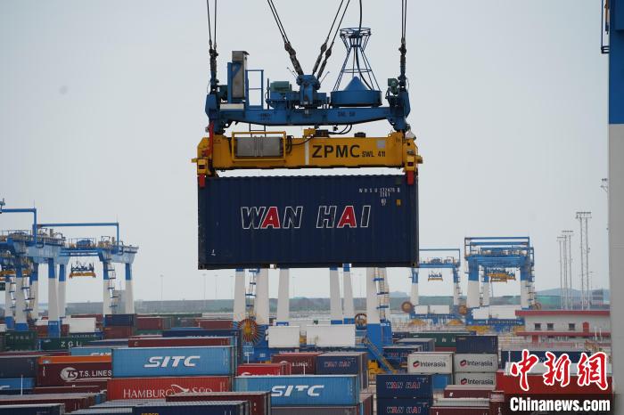 5日,“走進(jìn)壯美廣西·探尋向海之美”兩岸媒體人聯(lián)合采訪(fǎng)活動(dòng)來(lái)到位于廣西欽州的欽州鐵路集裝箱中心站和北部灣港欽州自動(dòng)化集裝箱碼頭。作為西部陸海新通道的重要節(jié)點(diǎn),欽州的樞紐通道優(yōu)勢(shì)越發(fā)凸顯。在鐵海聯(lián)運(yùn)新模式下,來(lái)自泰國(guó)、新加坡等“一帶一路”沿線(xiàn)國(guó)家和中國(guó)西部地區(qū)的貨物在這里實(shí)現(xiàn)“下船即上車(chē),下車(chē)即上船”。