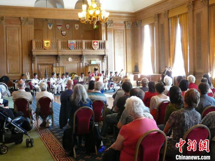 2008年9月25日,上海城隍廟道教樂團在英國利茲市政廳演出現(xiàn)場?!?上海市道教協(xié)會供圖)