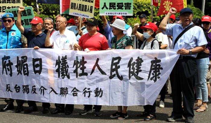 9月6日,臺灣數(shù)十個政黨和團體組成的反“臺獨”反介入聯(lián)合行動在臺北集會,抗議日本將核污染水排入海洋,要求民進(jìn)黨當(dāng)局嚴(yán)禁從日本核污染地區(qū)進(jìn)口食物。圖為抗議現(xiàn)場。